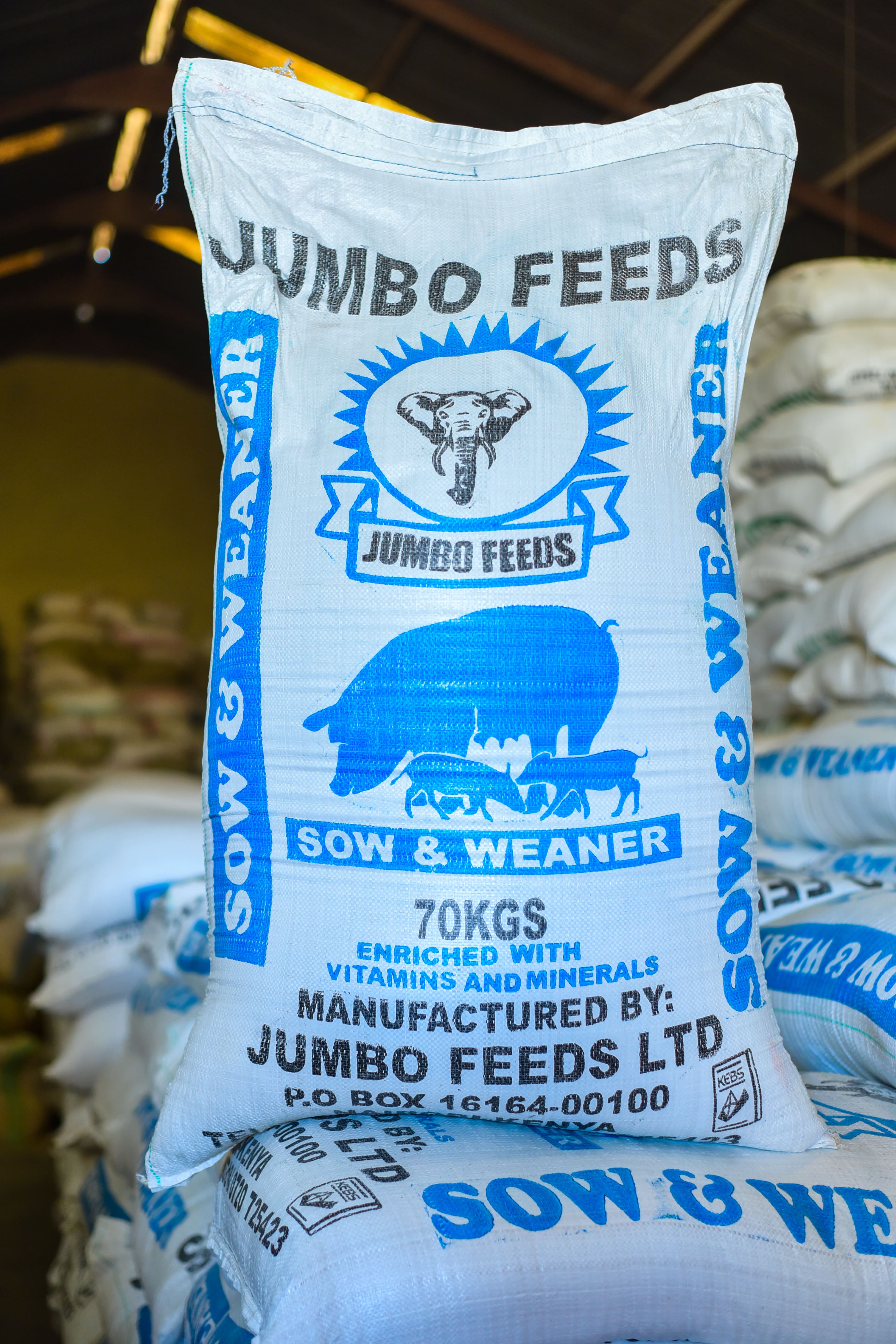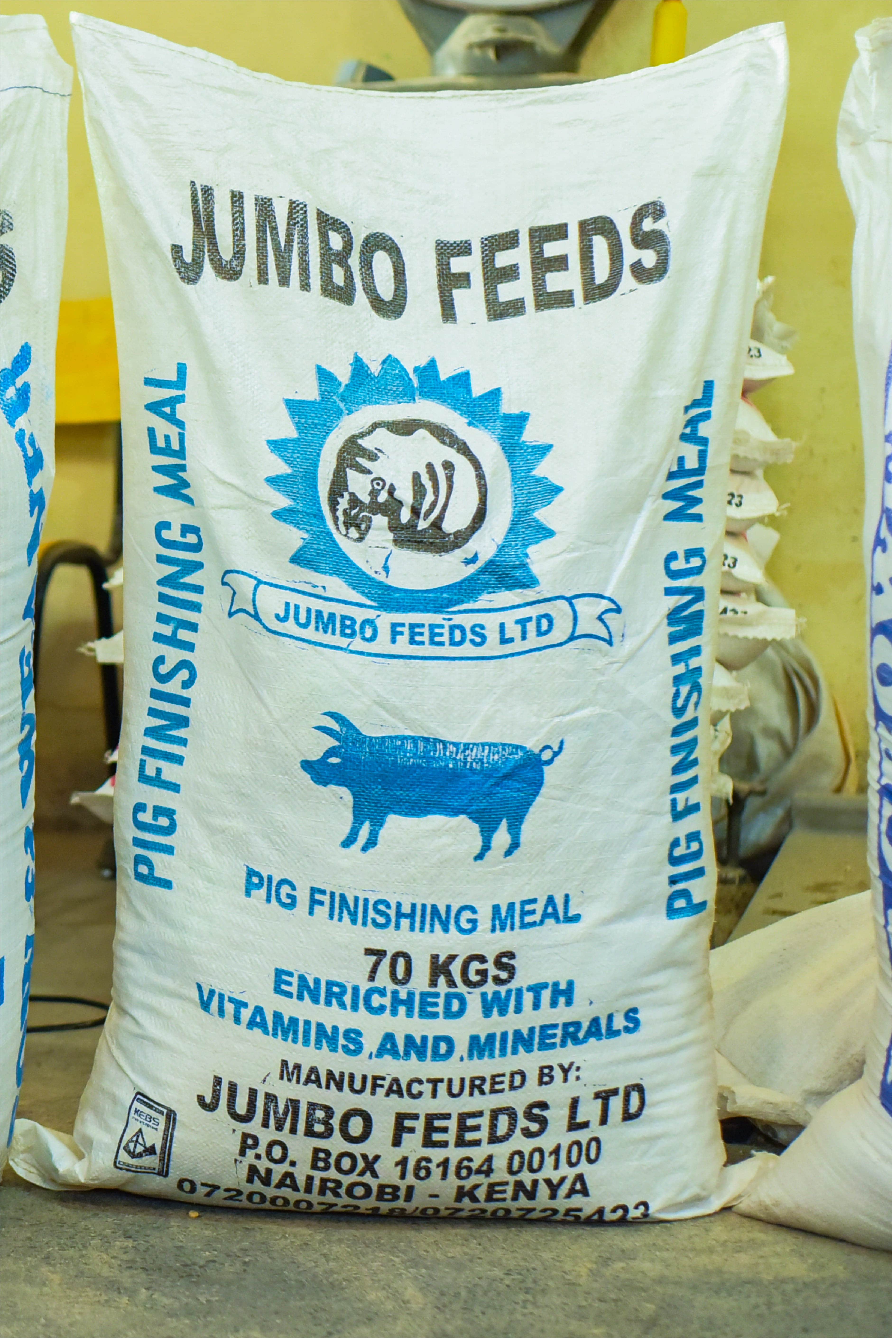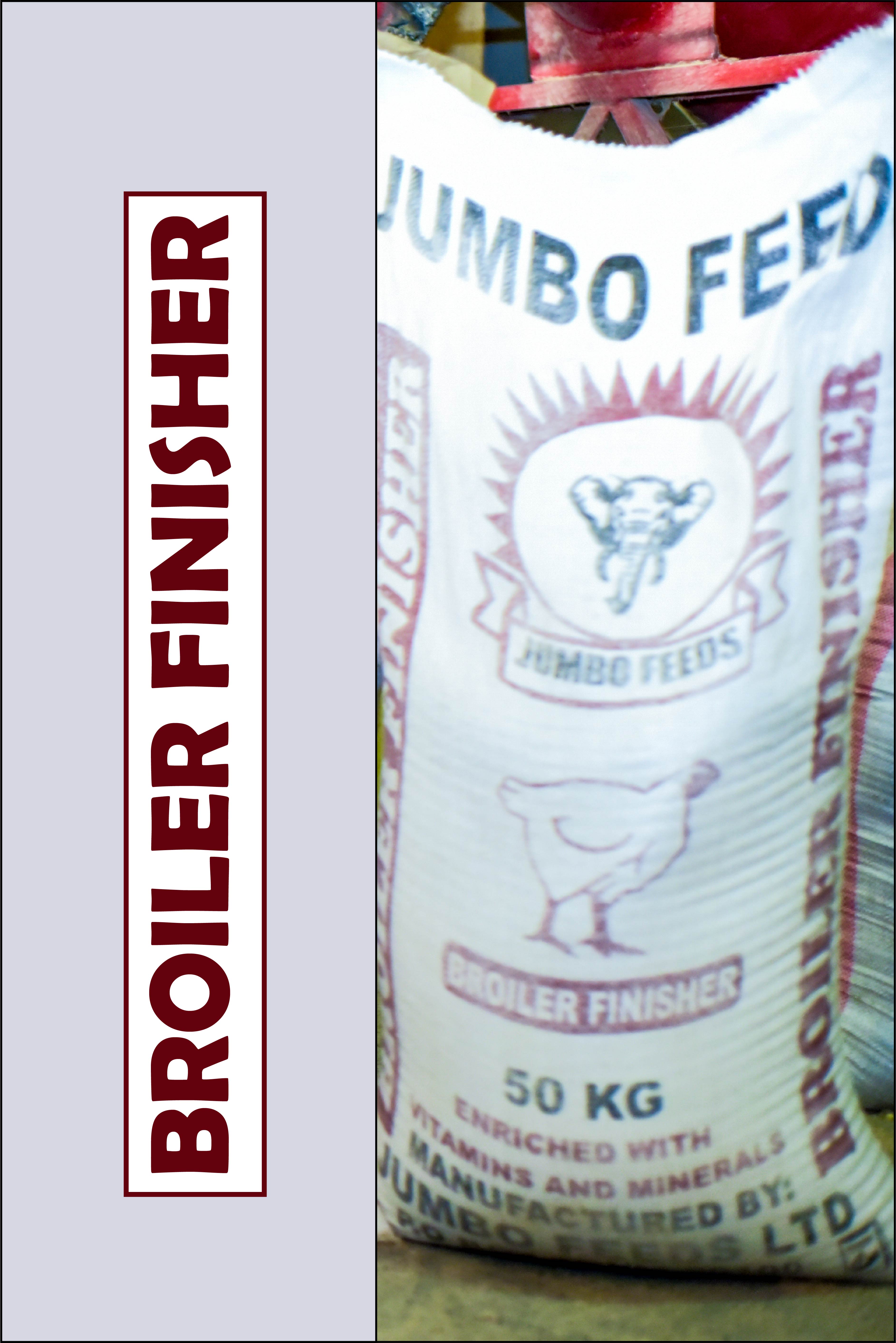 This feeds is fed to finishing pigs usually when they attain 60kg live weight so as to fatten them to 120kg. Over this period each pig consumes 2.6kg of finishing meal per day.