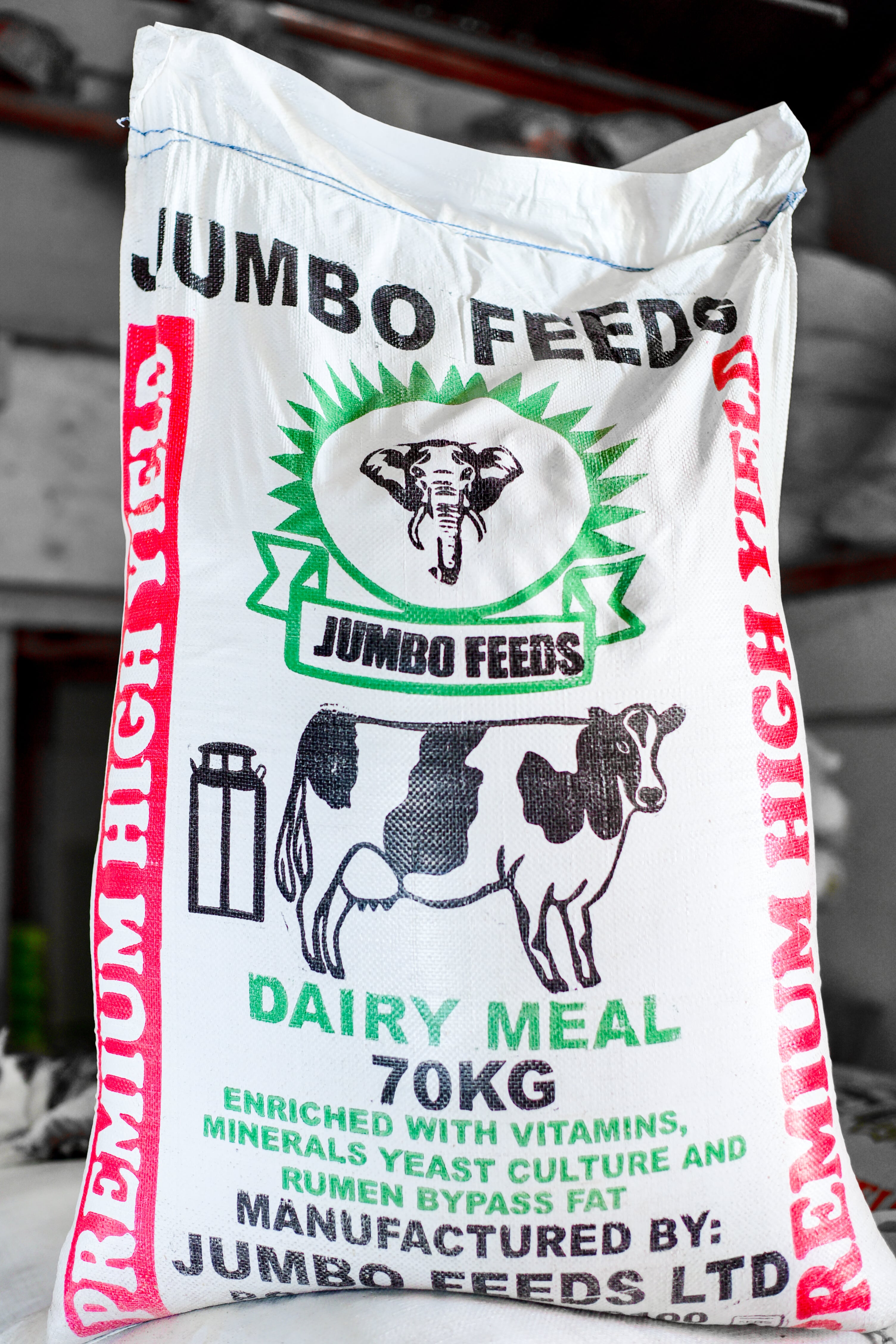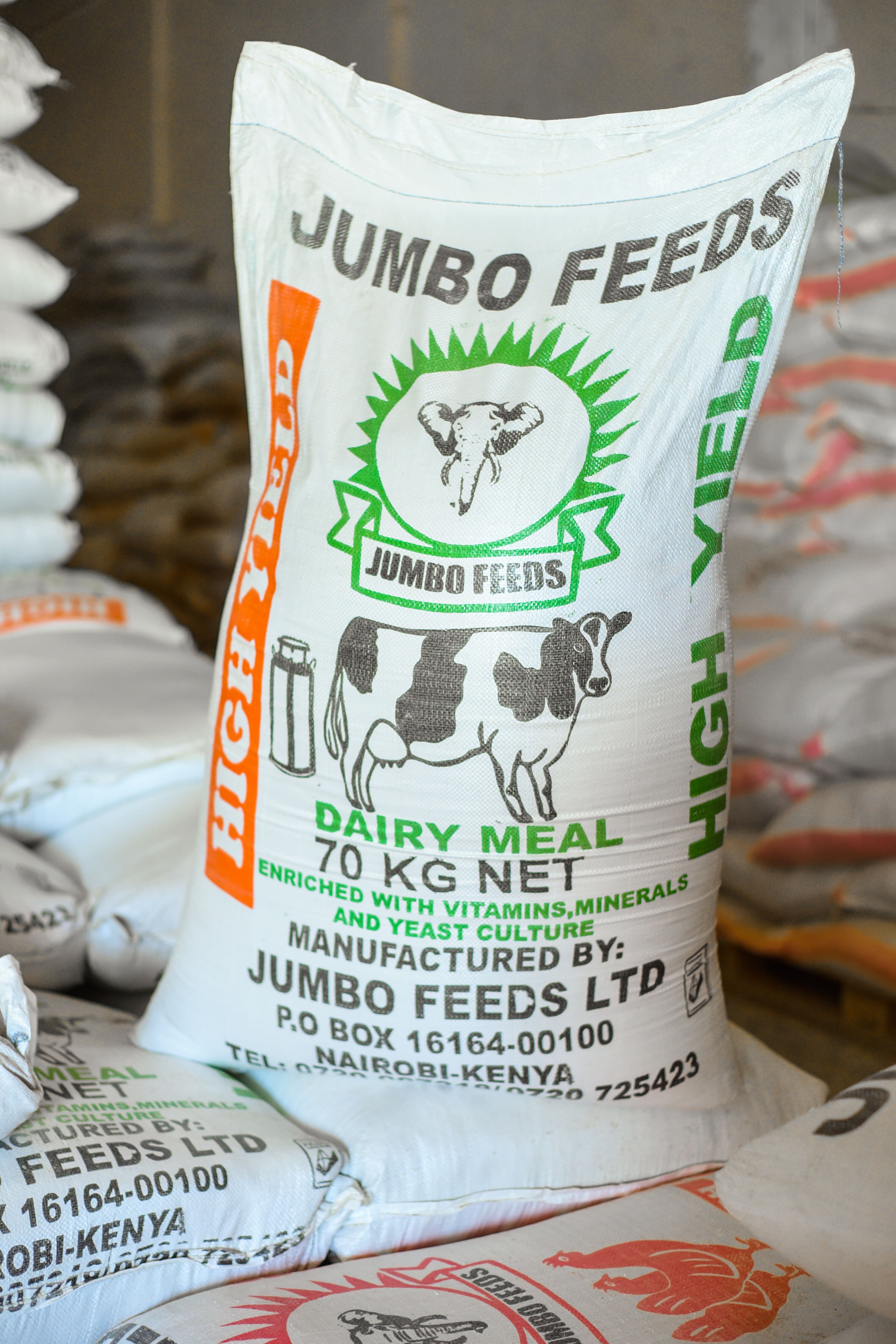 Dairy meal packs are 10kg, 20kg, and 50kg and 70kg bags